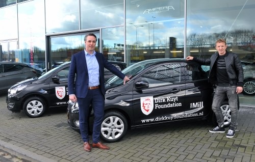 Amega sponsort de Dirk Kuyt Foundation met twee Opel Karl auto's en één Volkswagen Crafter Rolstoelbus.